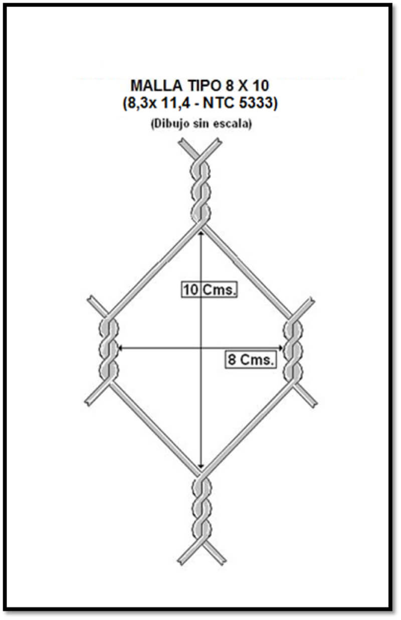 Consiste en un paralelepípedo rectangular constituido por una malla base, seguido de una malla completa que constituye sus paredes y su tapa.