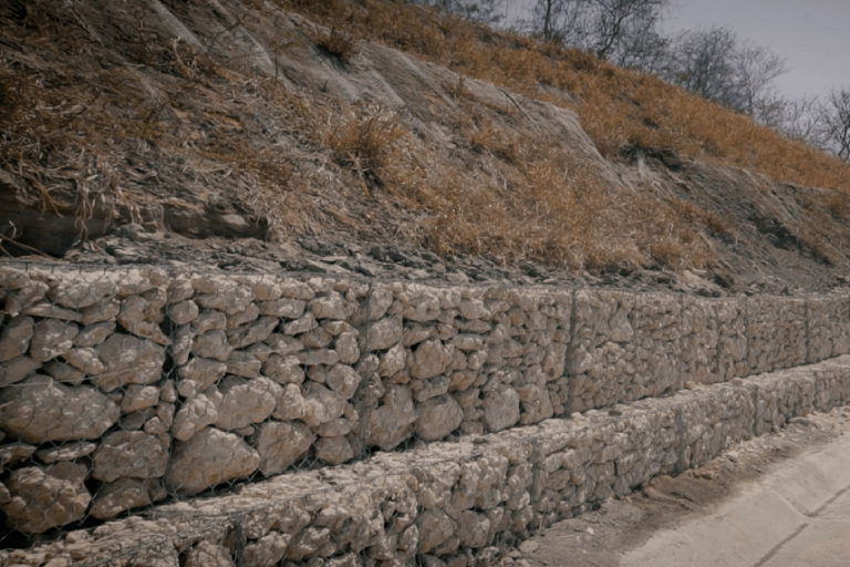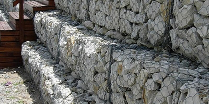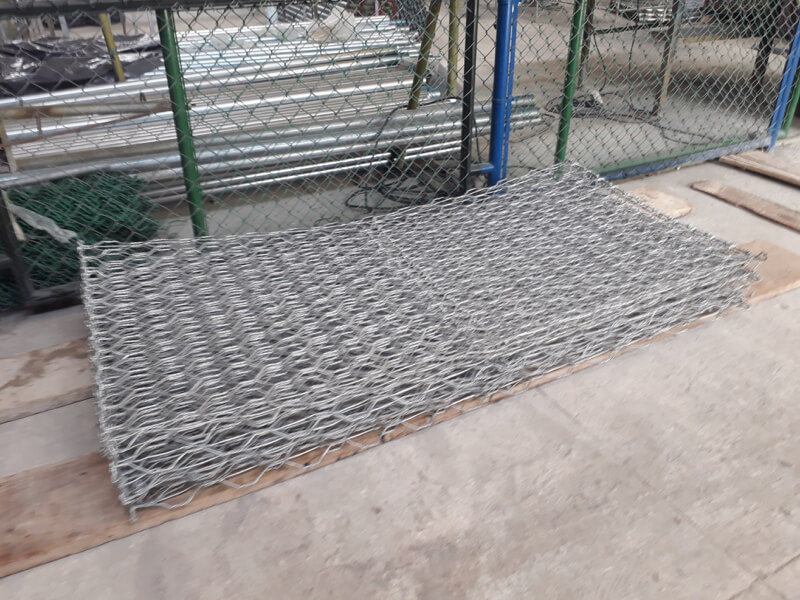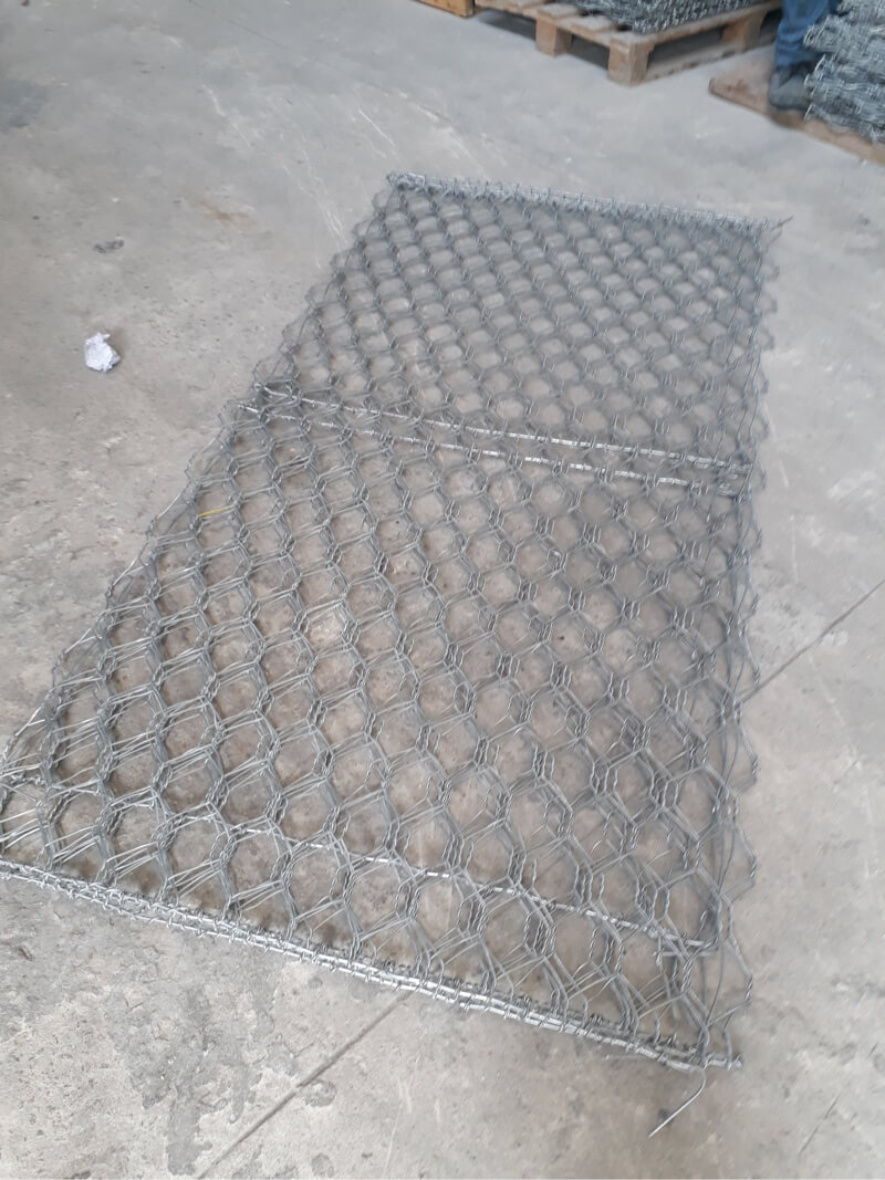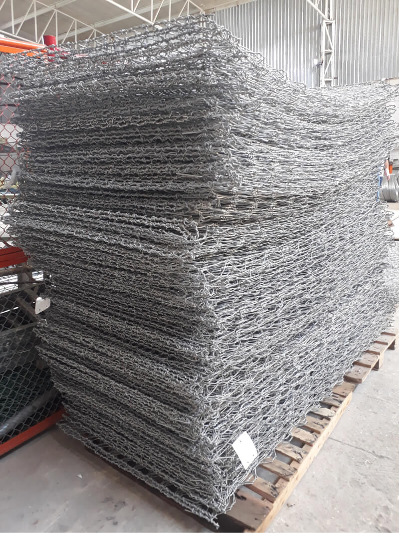 Se componen de tejidos de alambre de acero galvanizado, formando orificios hexagonales en triple torsión, que se acoplan dando forma a un recipiente rectangular o cubico en forma de caja.